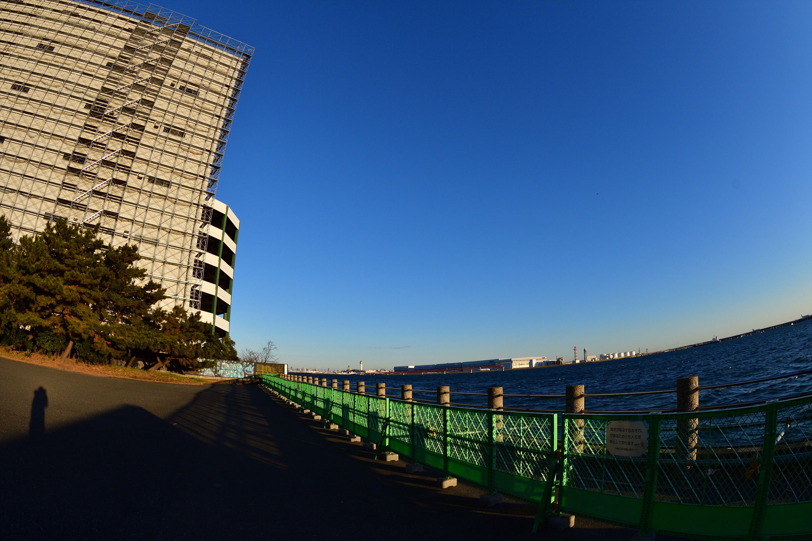 日の出後の浮島町公園。やっぱり冬だね。北風運用でる冬季はちょうどこの浮島町公園の上空からRW34Lへの着陸機を狙えるスポットなんだな。