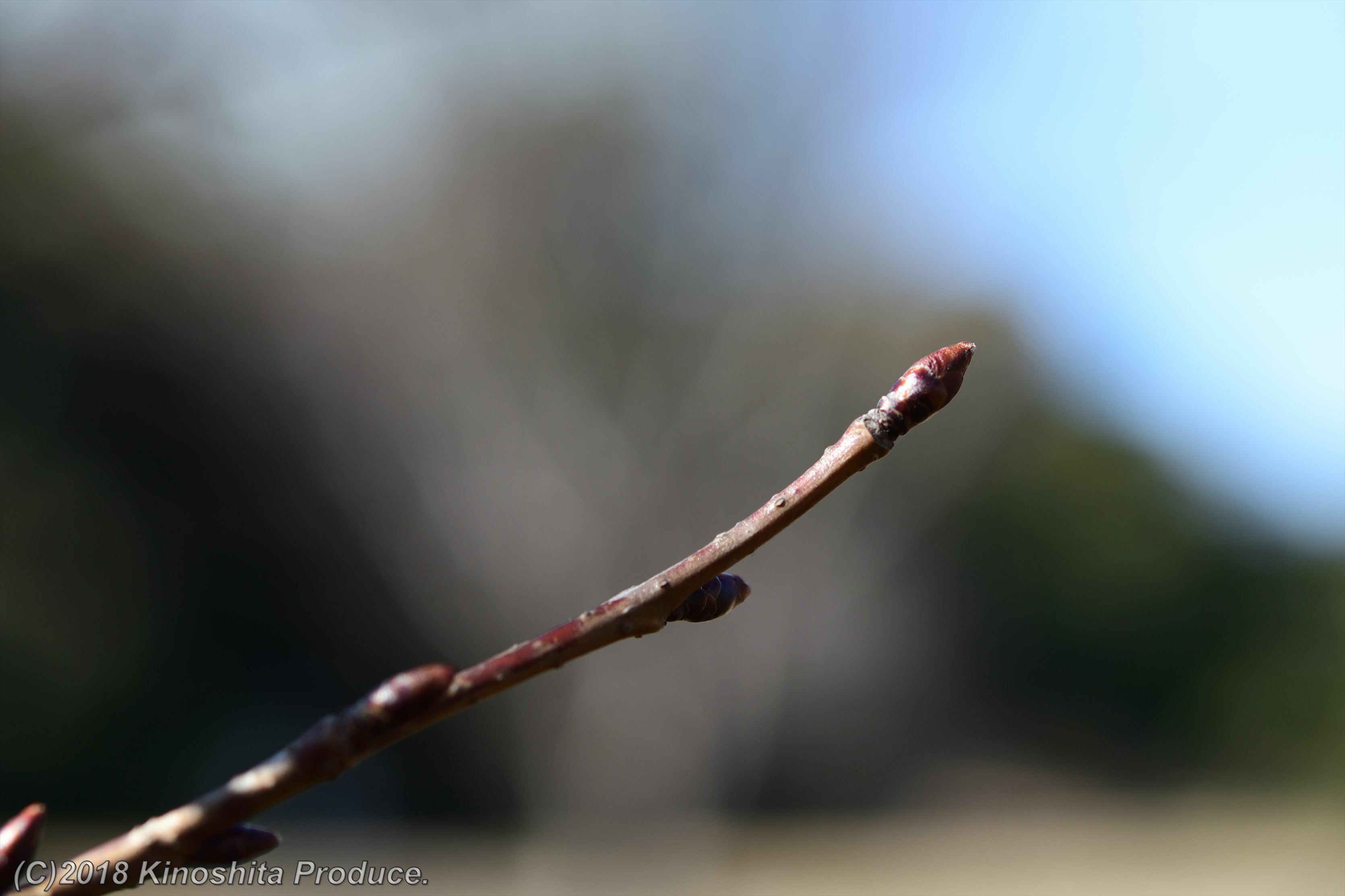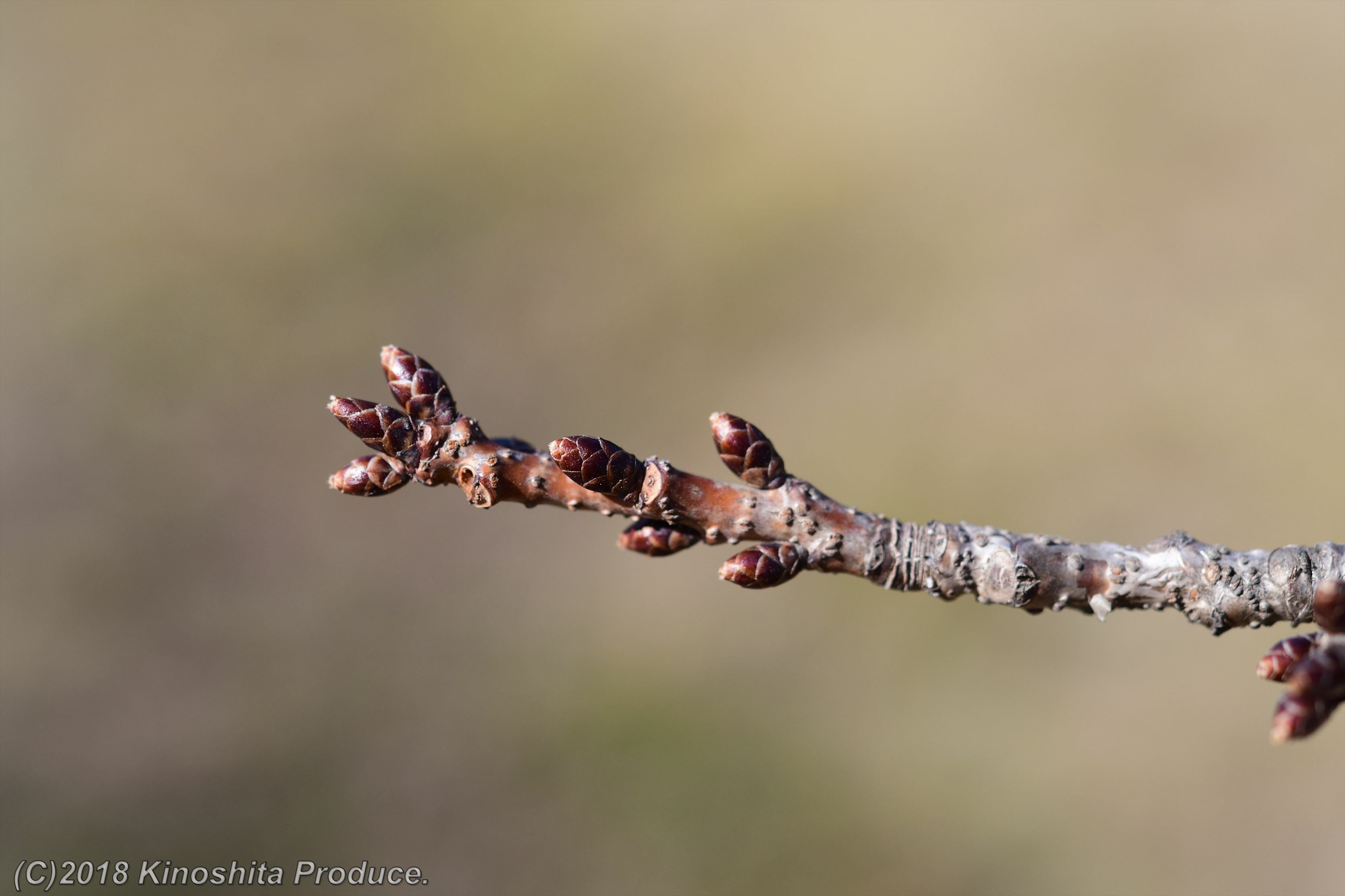 桜はまだつぼみ。若干大きくなってきたかな。上の写真はソメイヨシノ。下の写真はサトザクラ。