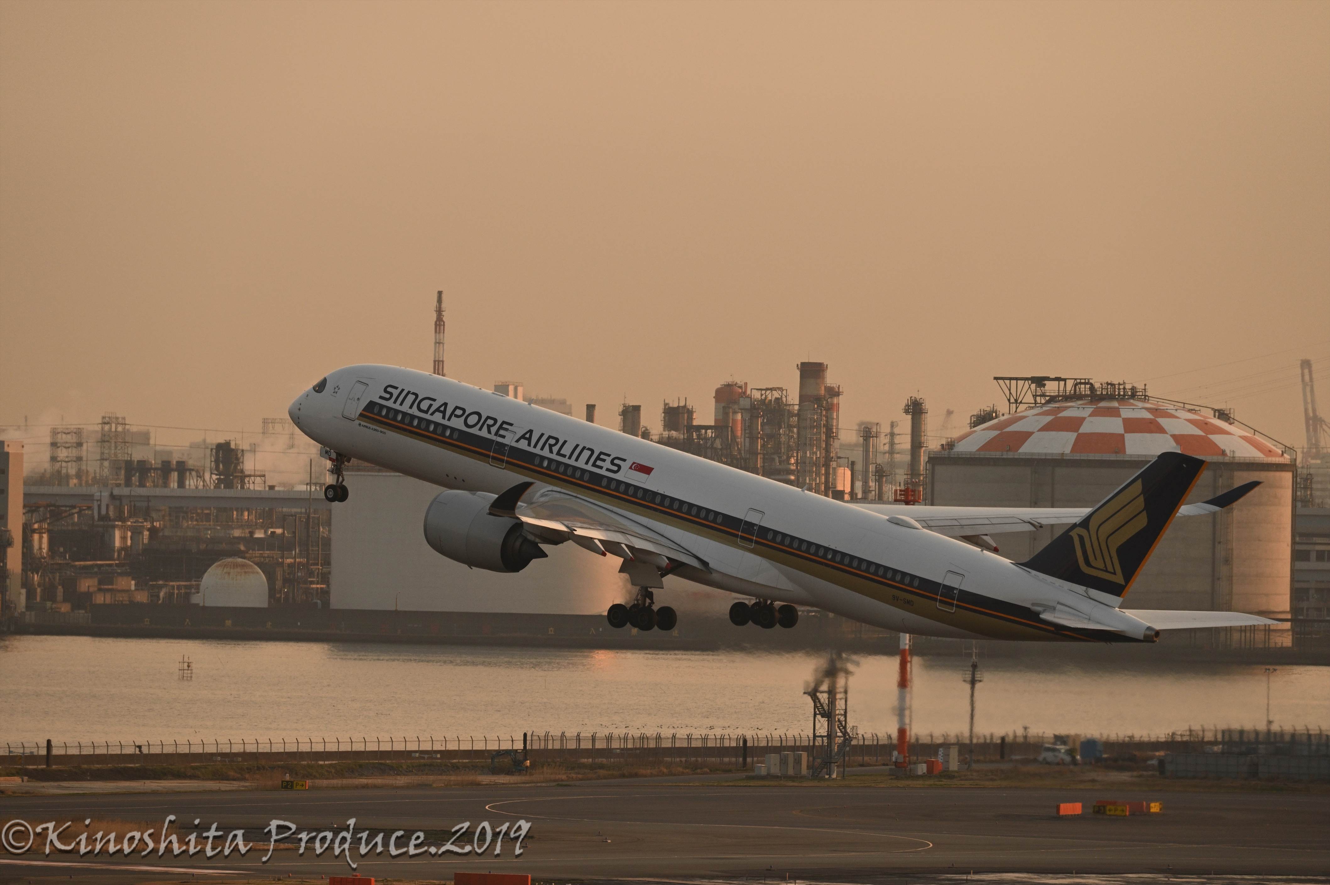 南風運用、夕日時の羽田空港を狙ってみた。
