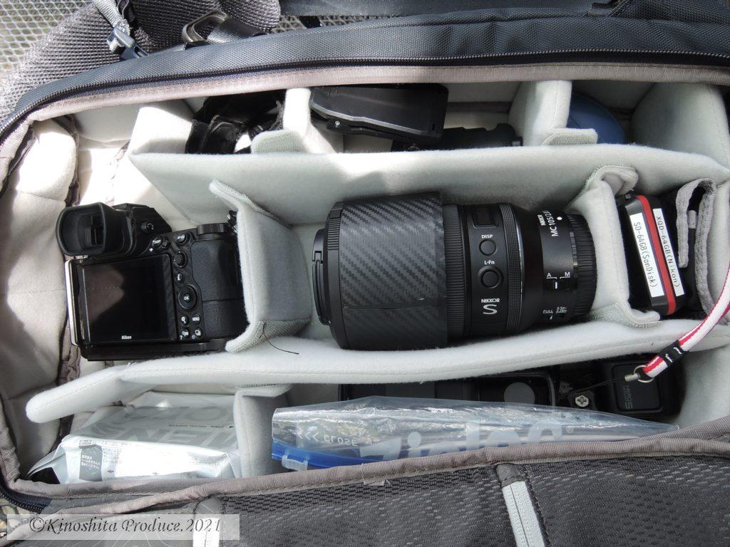 本日の装備品。Z7+NIKKOR MC105mm。マイクロレンズ105mmは今回に二回目の出動。まだ若干慣れが必要な感じがするかな。