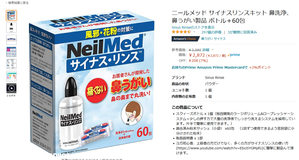35日分の処方をもらうのだが、今回から鼻うがいを行うとのことで生理食塩水を処方された。2Lとか持って帰れないわ。最初は6Lくらい出しておきましょうか?って言われたけど持ち歩けないですね。ってことで2Lにしてもらった。