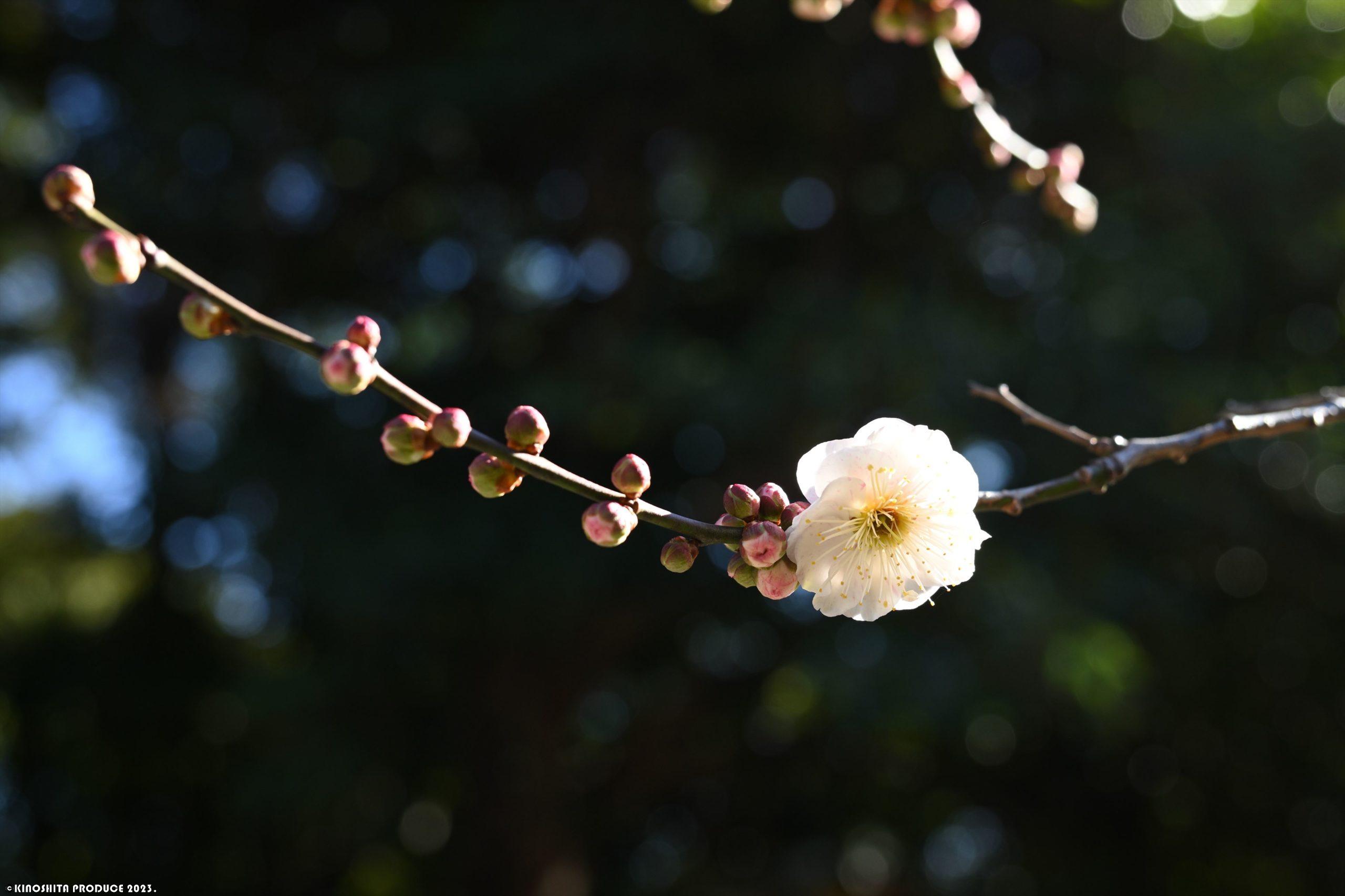 梅林のあたり。こちらは咲き始めで満開になるまでにはもう少し時間がかかるようだ。ただ写真のように一輪だけでも咲いて他は蕾でも十分絵になるのが梅。