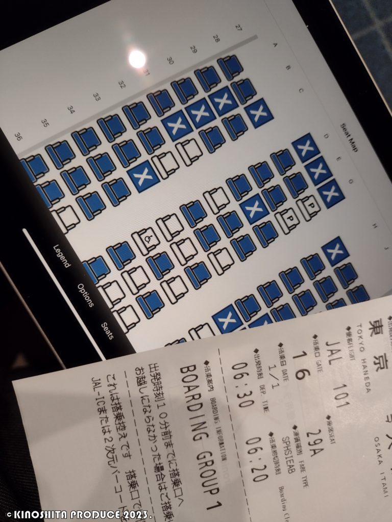 てっきりこの1月1日の初便はさぞ自分のように初日の出撮影を楽しむ方々が多いのかと思い、12月の時点ですべて満席、いやまたは窓際はほぼ確実に空きが無いかと思ったら実はそうでもなく。まあこれもダイヤモンド会員の威力というかなんというか、たしかにJALのステイタスによっては空き状況が変わるのでこちらは空きがあると見えても、一般の会員の方だと既に通路側しか無いというのは普通にありえるわけで、今回も幸いにして狙いのA席(東側)は無事に確保となった。