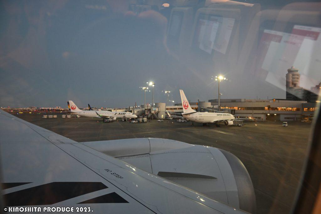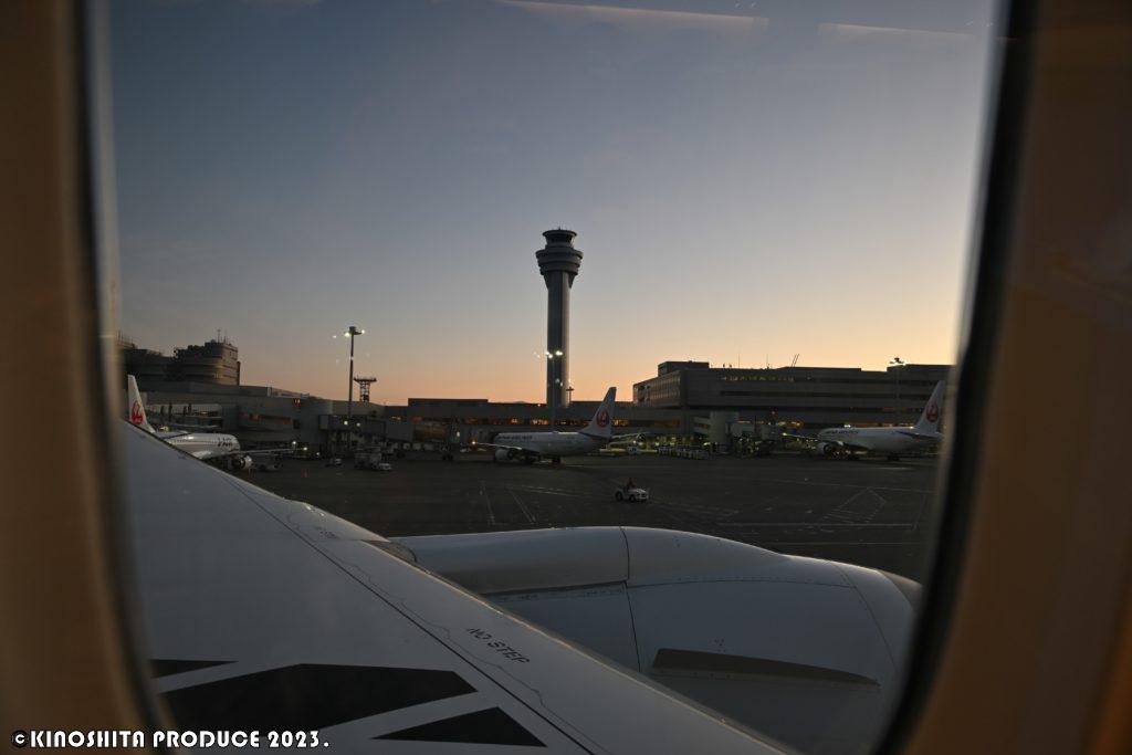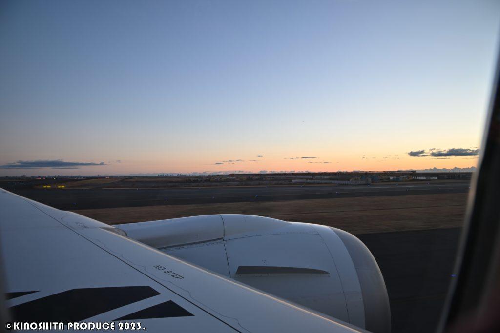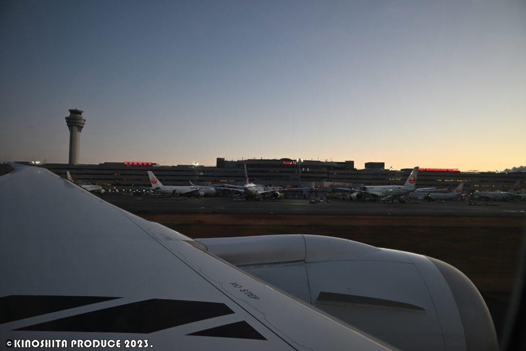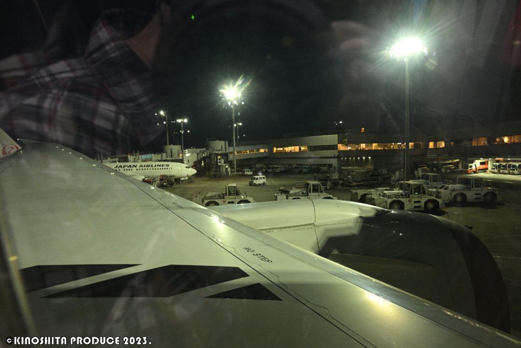 搭乗時はまだ真っ暗。早朝から各スタッフの方々が働いていると思うと頭下がる。安全・・ただこのひとつの為に全力を尽くす。当たり前を当たり前にこなすことって大変だと思う。