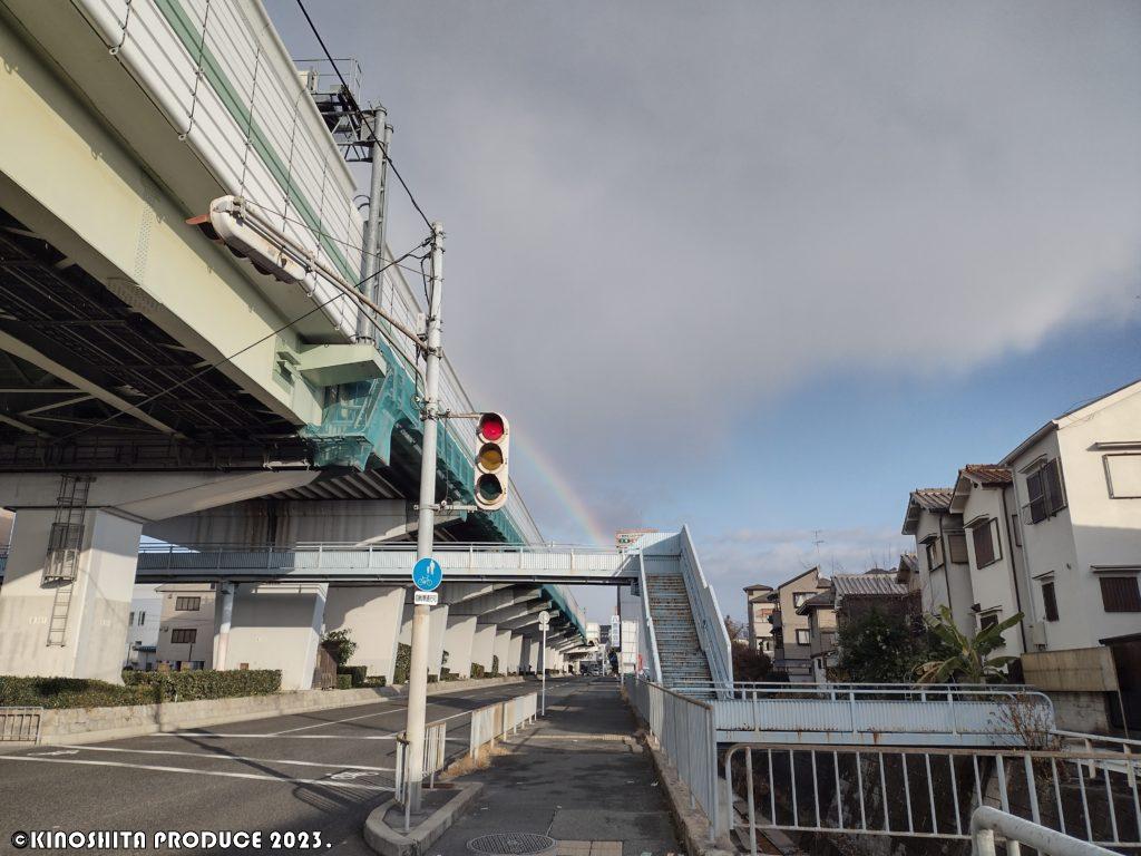 薄っすらと虹・・・今日は小雨混じりの天気だったので虹にも遭遇。飛行機と虹。ほんの薄っすらだけどナイス!