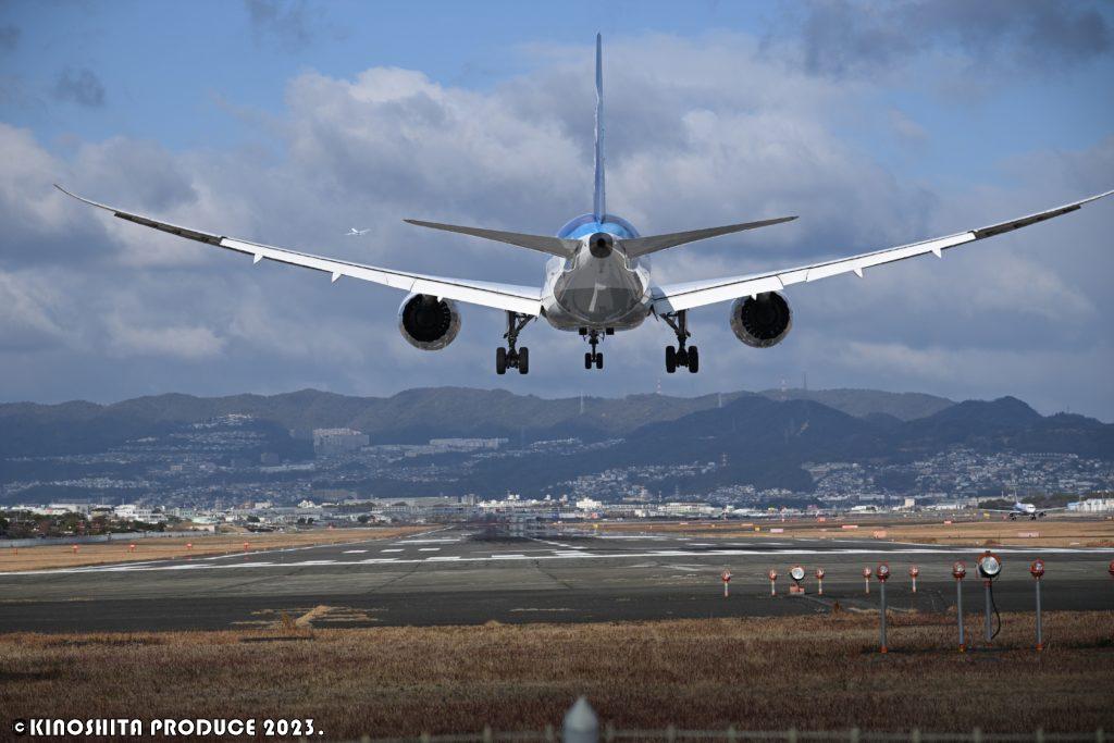 2024年元旦初日・飛行機撮影は大阪伊丹空港千里川土手からアンダージェットを狙ってきた。