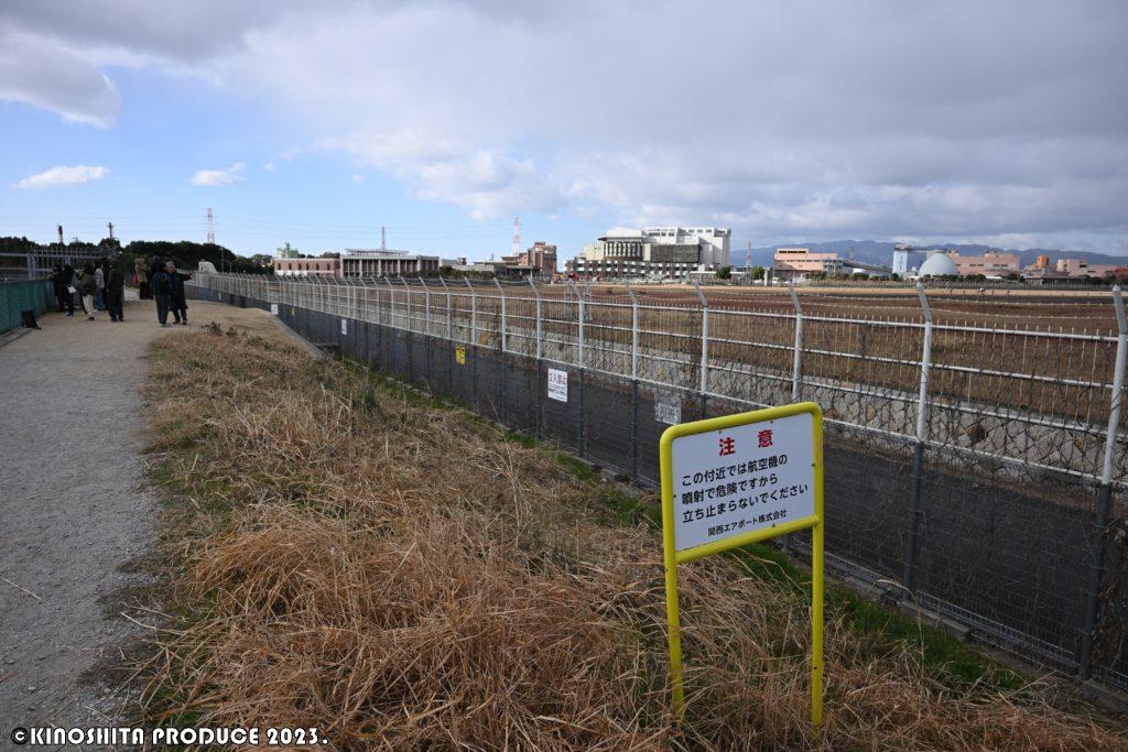 向こう側にも同様の看板が設置されていて滑走路中心付近は「危険やで、気イつけやー、一応言っておくでー」みたいなことを言いたいようだけど・・・ご覧の通り守る人いるわけがない。