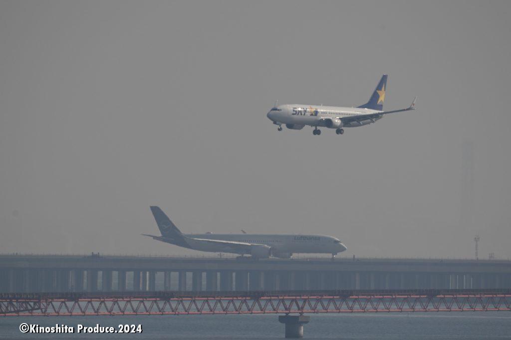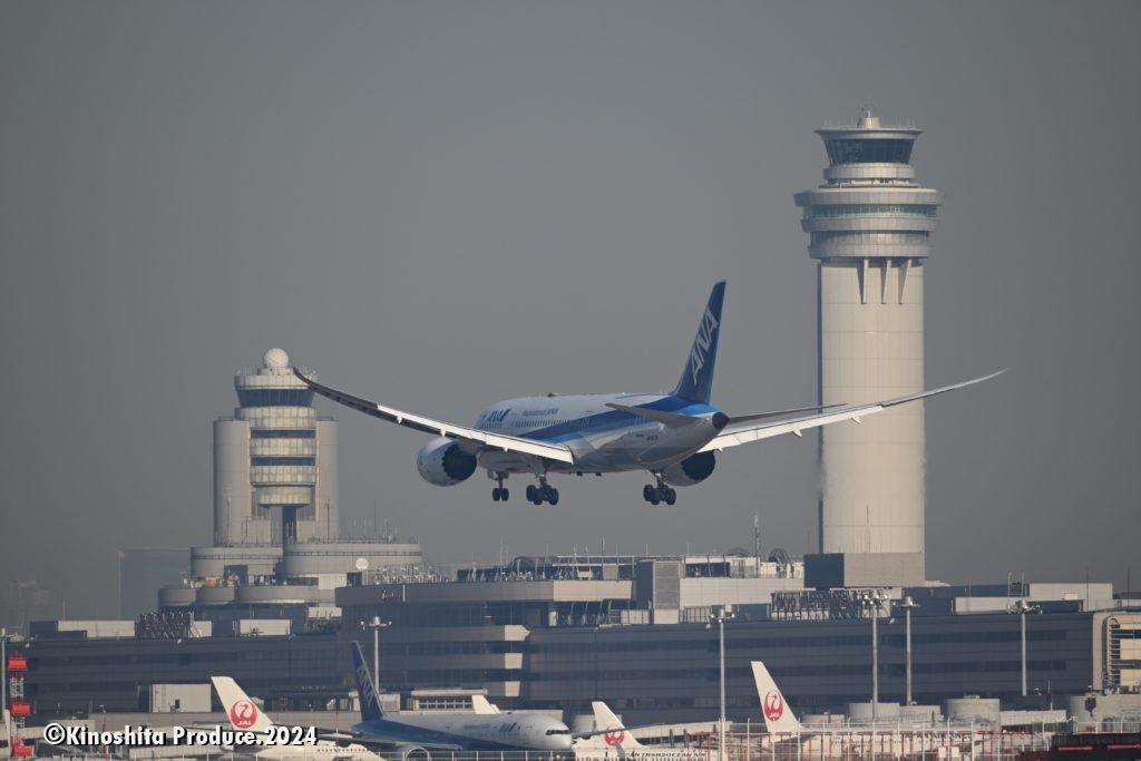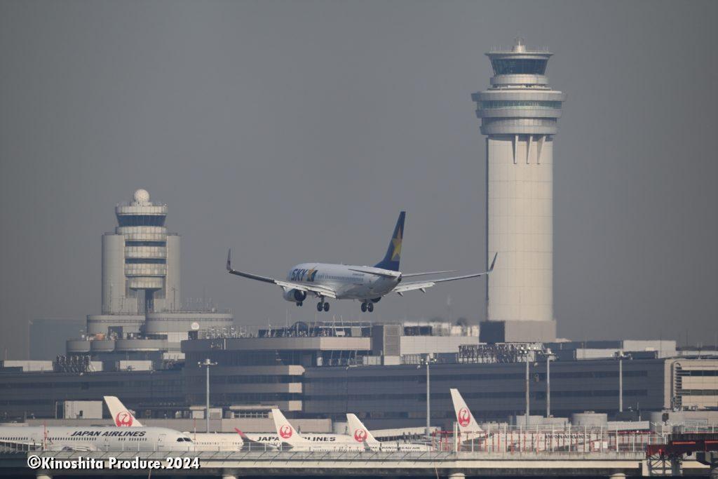 オーソドックスにA滑走路(RW34L)へのアプローチ機を狙う。ちょうど東からの太陽が照らして機体にいい感じで光が当たるのが狙い目で好きだ。