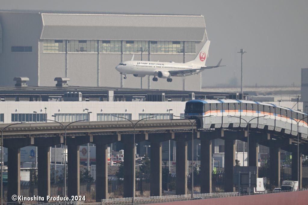 今回、この場から狙いたかったのがこの写真。東京モノレールと飛行機の組み合わせ。