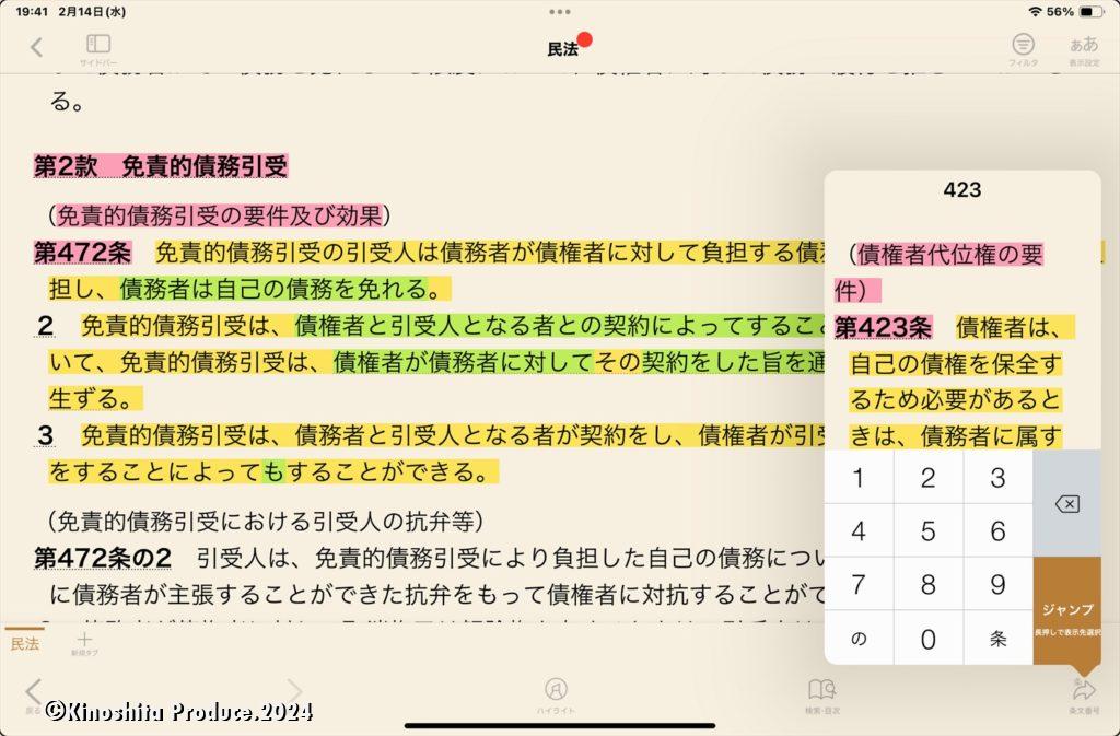 便利な機能でよく使うのはテンキー。条文番号を入力しジャンプしてくれる点。