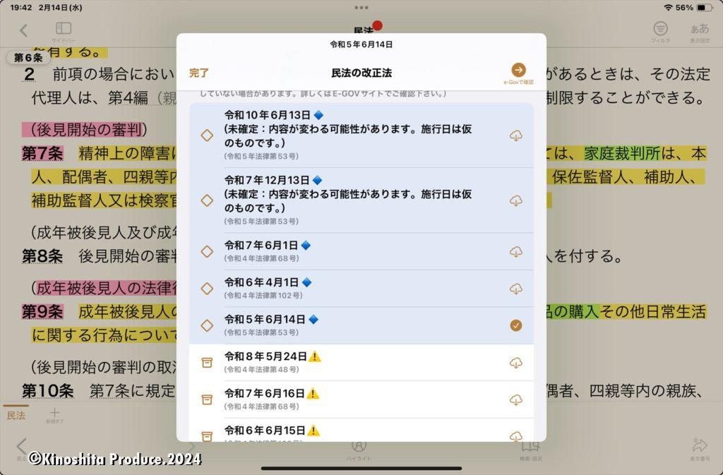 民法ってこんなに改正していくんだ。。。。試験にはあまり関係ないけどね。レ点が付いているのがダウンロードして使っているもの。R5年6月14日に更新している民法を使っていることになる。いずれR6年4月1日をダウンロードすることになるかと思う。試験問題を変えるような改正となるようなものではないけどね。