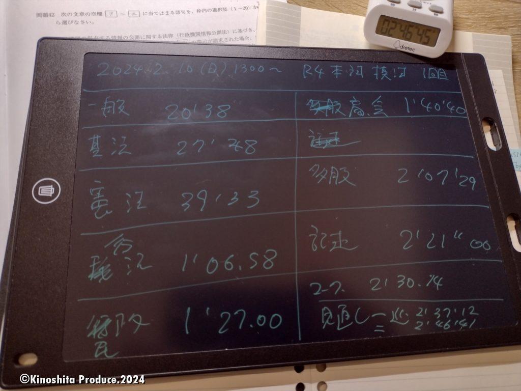 11日(日)に本試験問題R4年度を解いた。2年目の今年はとにかく本番対策を重点にしたいので早い時期から本試験慣れを目指す。試験時間3時間のうち目標は2時間前半で解き終える。2時間10分とか15分くらいかな・・。