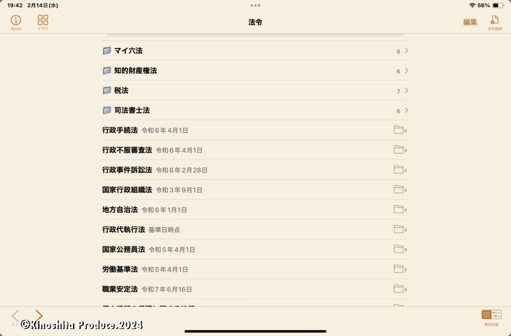 六法はタブレットのアプリを使っている。3ヶ月で380円のサブスクで全法律網羅!激安。しかも逐次更新できるし、必要な法律はダウンロードし放題。全く関係ないのに刑法とか労働基準法、放送法なんかダウンロードしてみたり・・・