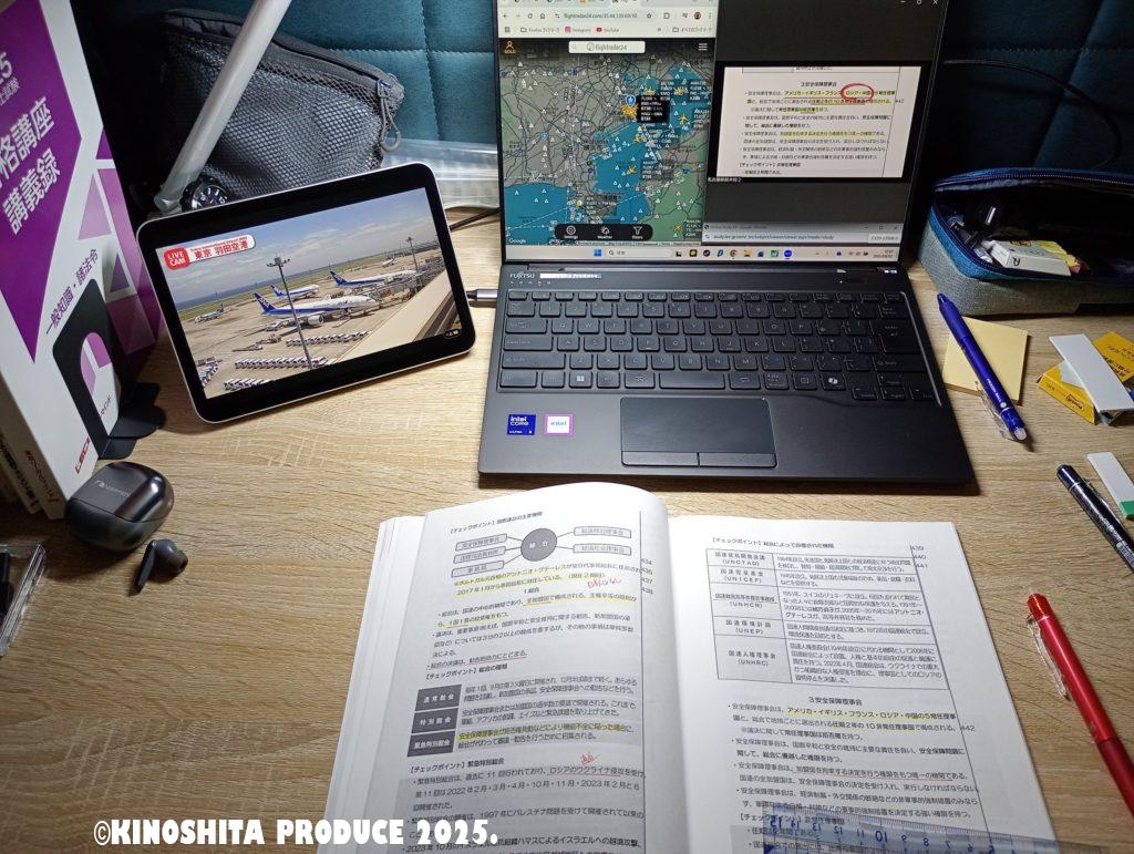 ウルトラモバイルPCの画面半分にフライトレーダー24にして隣のiPad miniでは羽田空港のライブカメラ映像。飛行機好きにはたまらない絢爛豪華な構成。いまやどこの空港もライブカメラがあるので、羽田を飛び立って福岡空港へ向かう飛行機も、羽田のライブカメラで見送り、レーダーコンタクト。福岡空港のライブカメラで迎えてスポットイン・・・