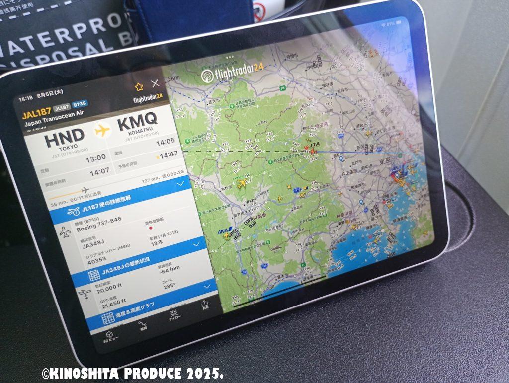 機内WiFiがしばらく接続できずでやっとの思いで接続できたと思ったら、すでに大島上空だった。