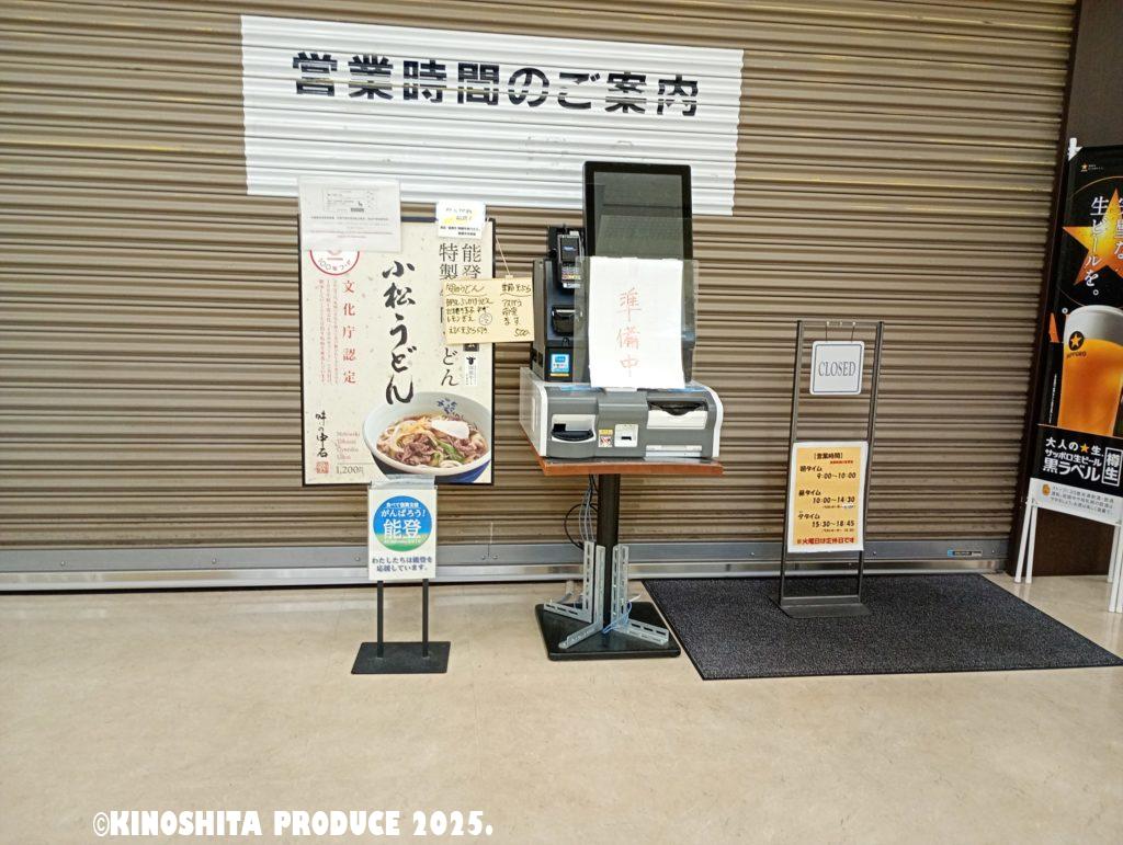 昼抜きなので遅い昼なのか早い夕飯なのか、小松空港で補給しておこうとおもって気になっていた「小松うどん」のお店へ向かうと・・・「火曜日は定休日」ってマジか。