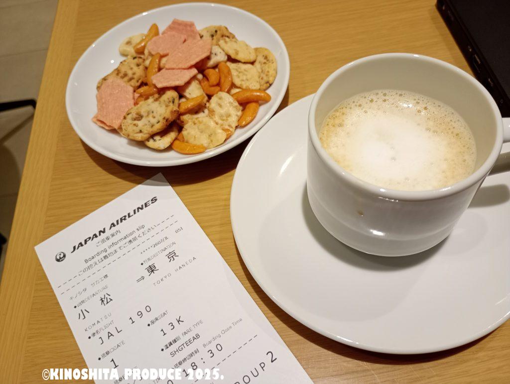 この時間は先客が3名かな。早めに着いたとしてもラウンジがあるとゆっくりできる。小松空港はゆったりできるところが無いのでラウンジは助かるわ。大きな空港だと時間を潰すところは多いし飽きないけど、地方空港の場合は退屈になるわね。小松空港のサクララウンジは羽田や伊丹のような大きさではないけど十分寛げます。