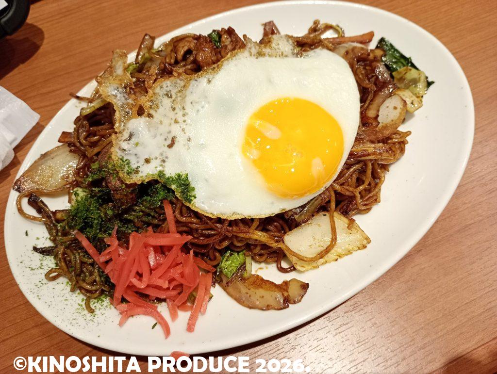 量は1.5玉ほどかな。具もそれなりに入っていて目玉焼きが乗せられて。かなりインパクトがある絵。