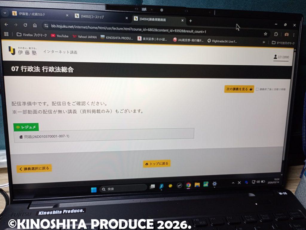 現在配信中の民法はとりあえずコンプリート。次回は18日から続きが配信される。これでやっと追いついた感がある。その後、現時点までの過去問題をこなす。