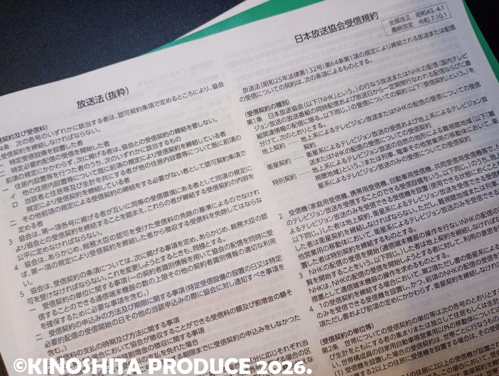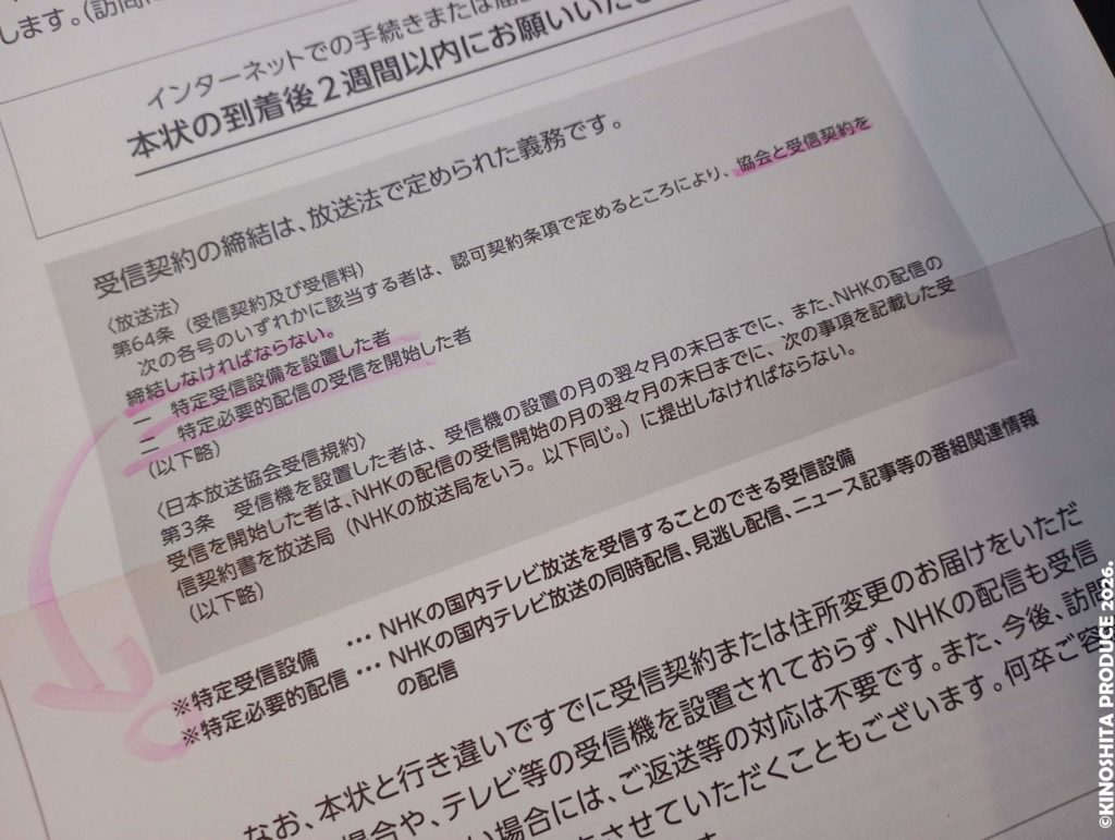 自宅にはこれらの受信設備が無いので契約する必要が無いのだが、なぜ郵便が届いたかというと、以前は契約していたから。受信設備(テレビ)があったので放送法に則り契約していた。